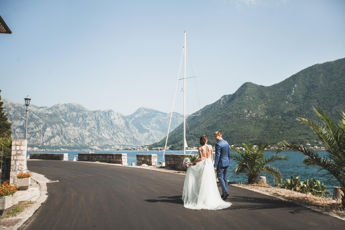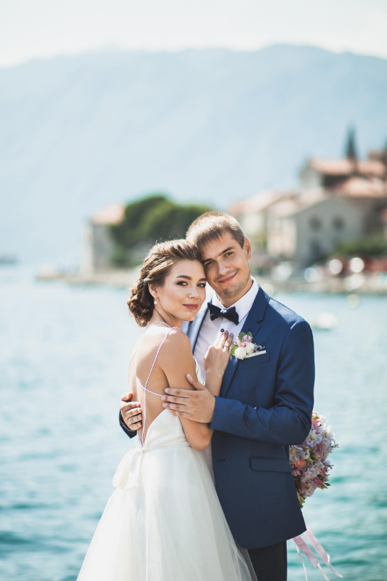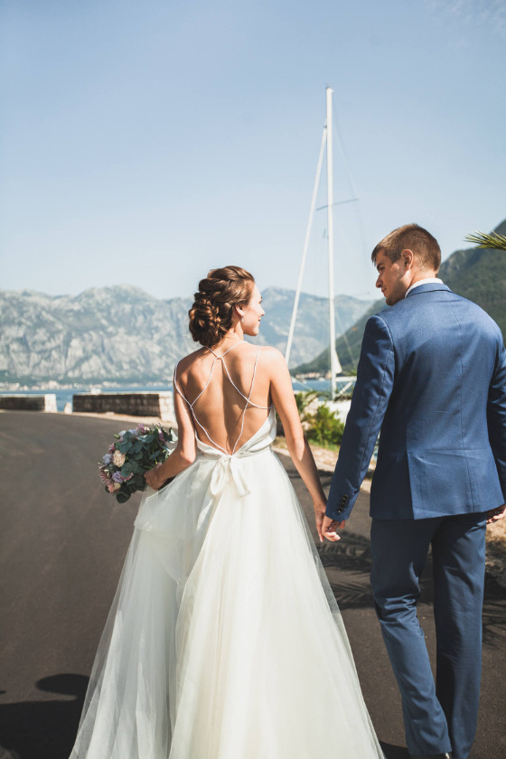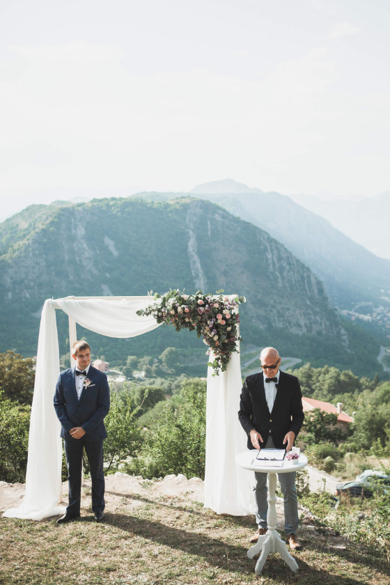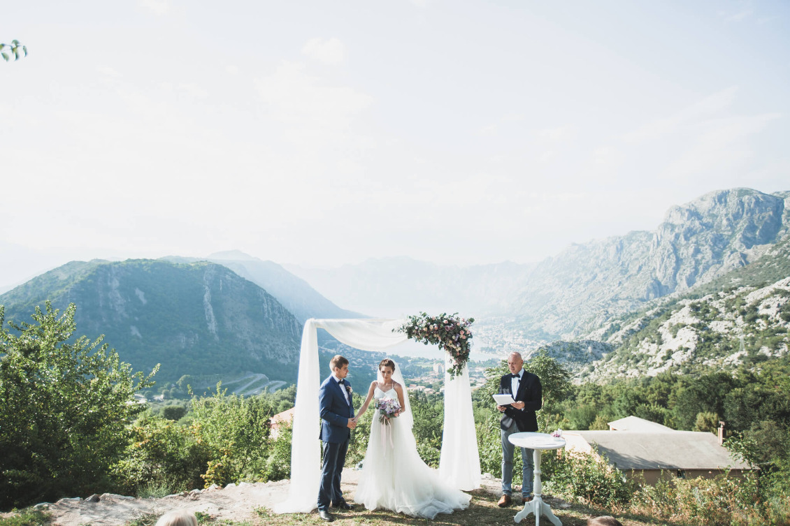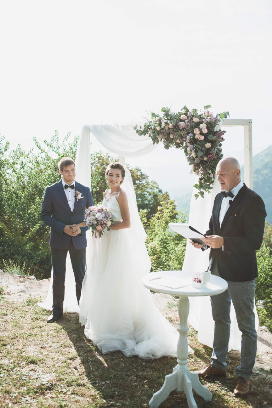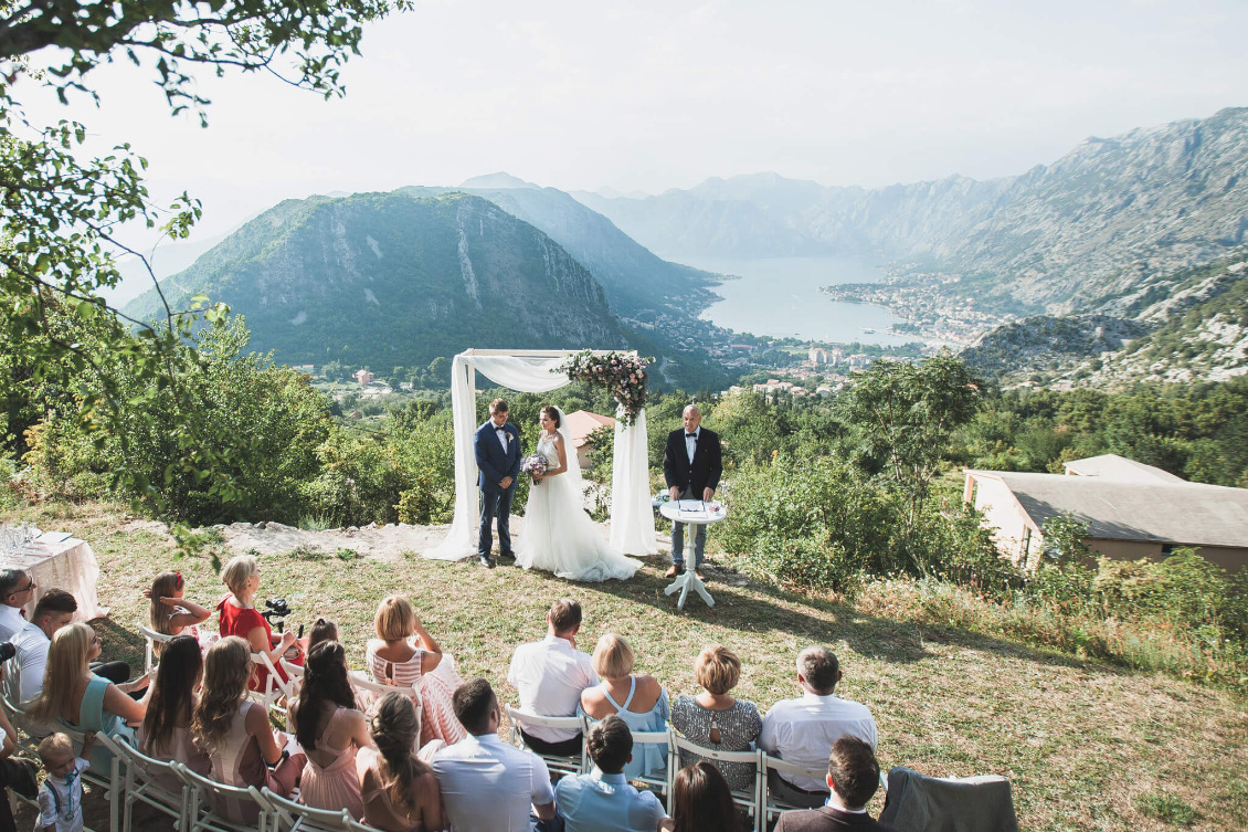 Церемония проходила на волшебной райской полянка с видом на Боко-Которскую бухту. Нами был организованы трансфер для молодоженов и гостей, свадебная программа и нахождение отличных местных, русскоговорящих специалистов: ведущего, диджея, оператора и стилиста.