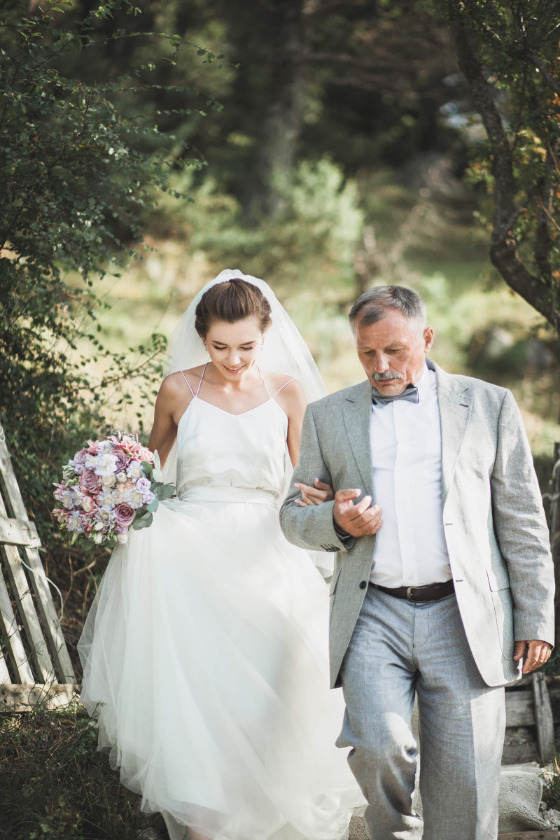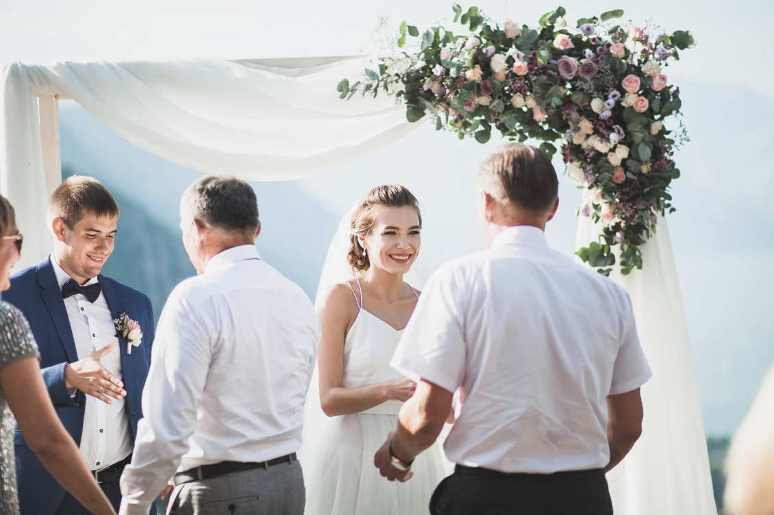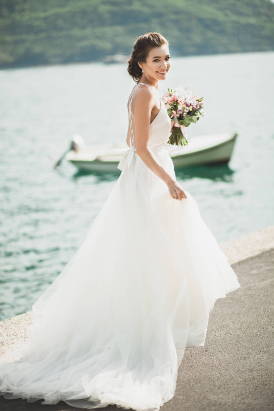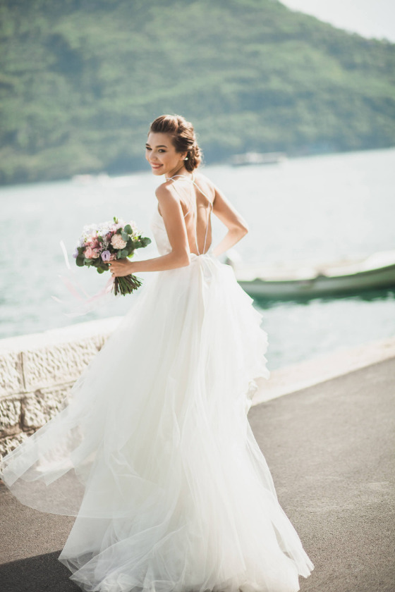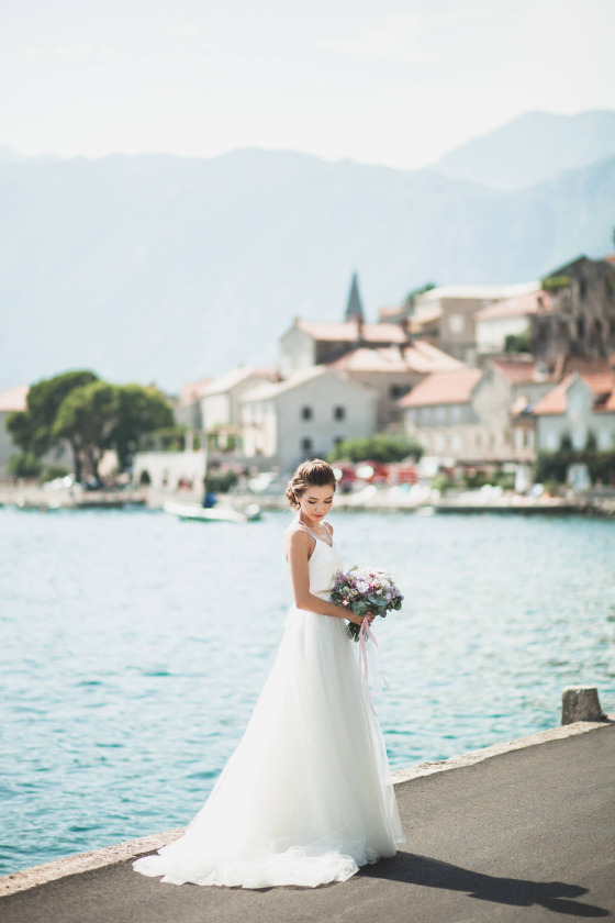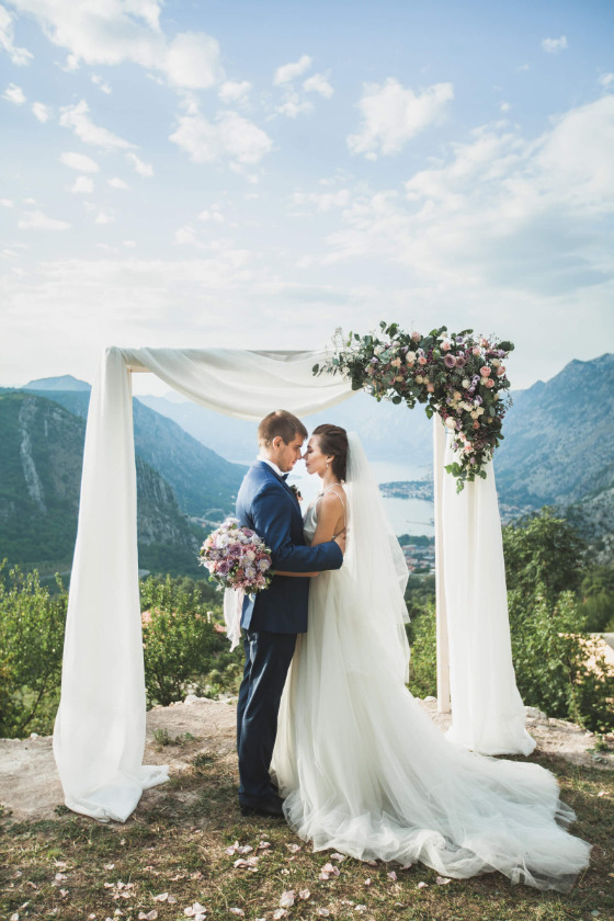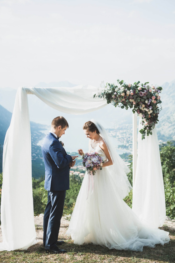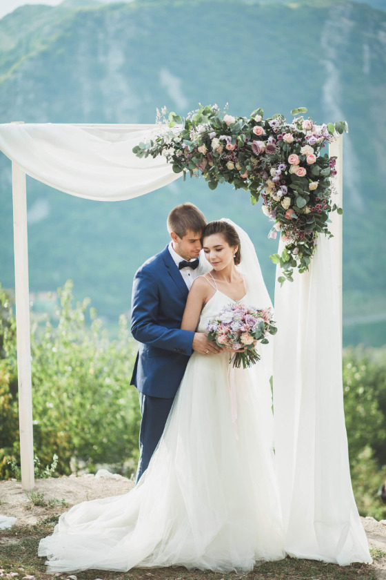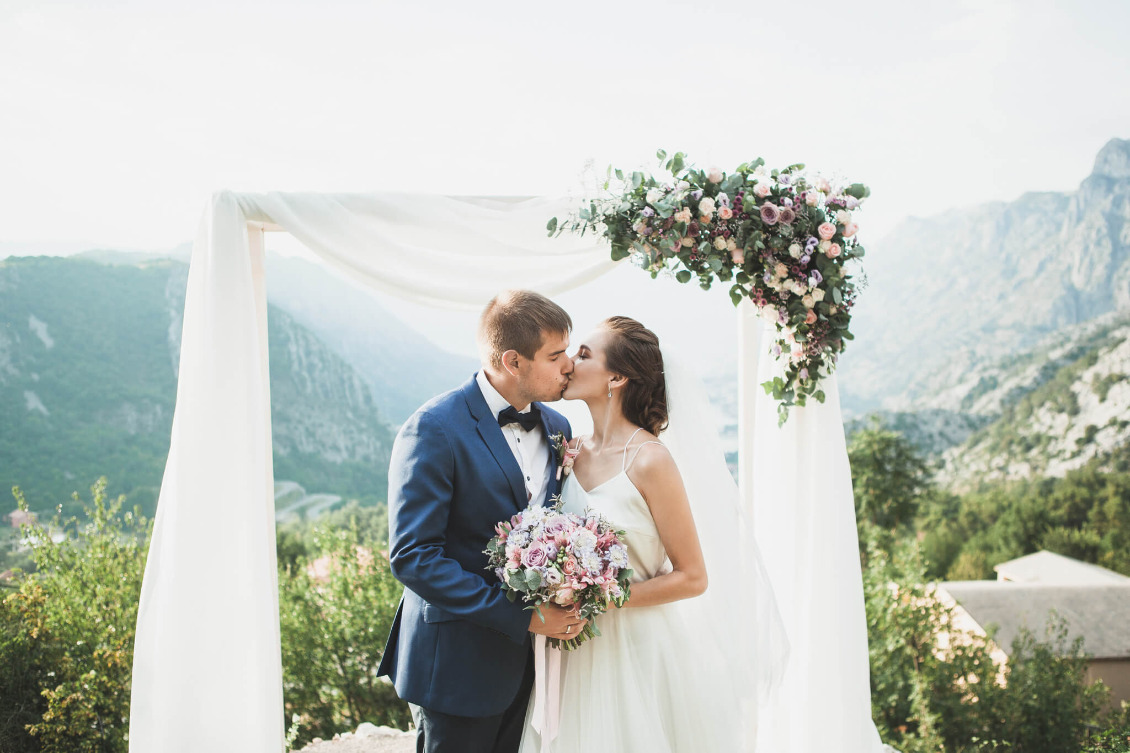 Церемония проходила на волшебной райской полянка с видом на Боко-Которскую бухту. Нами был организованы трансфер для молодоженов и гостей, свадебная программа и нахождение отличных местных, русскоговорящих специалистов: ведущего, диджея, оператора и стилиста.