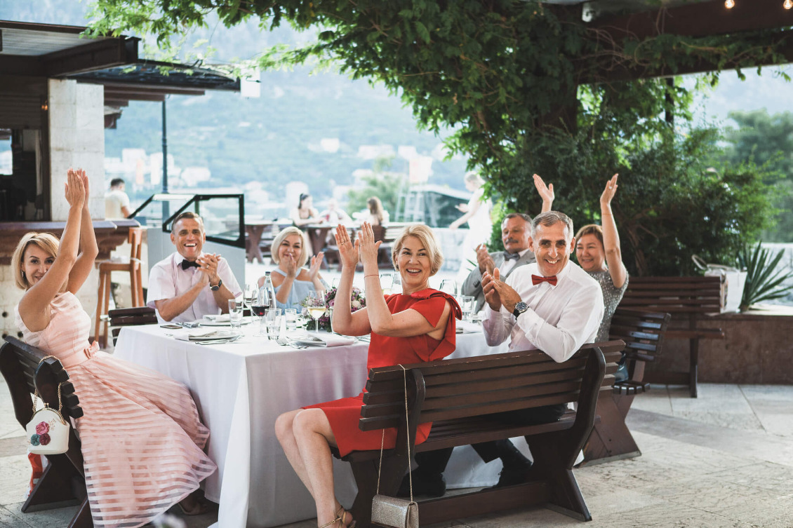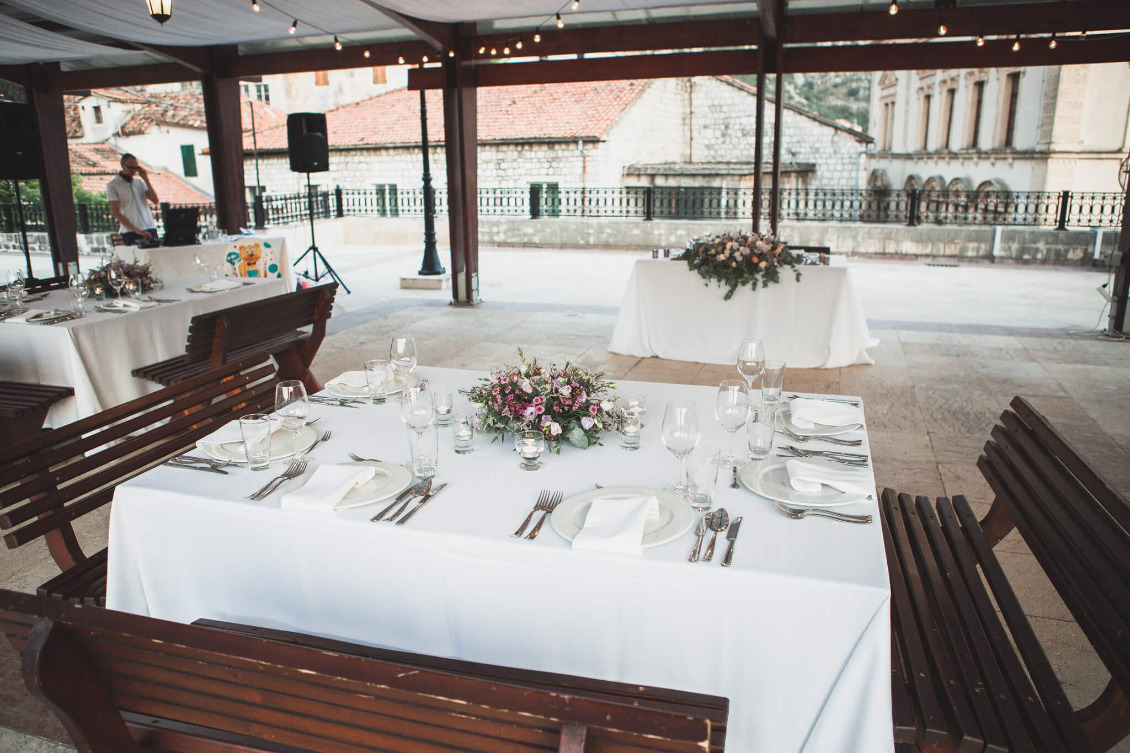 После церемонии был чудесный банкет с национальной кухней на просторной террасе с видом старого города Котор.