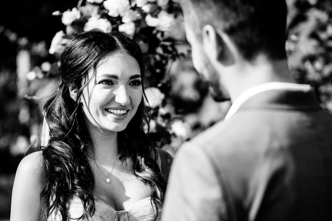 Для регистрации идеально подошла уютная полянка на участке. Её виды отображали всю красоту и волшебство события: за аркой располагались роскошная усадьба и сад, а впереди раскрывалось сверкающее, бескрайнее море, которое не переставало дарить предвкушение сказки.